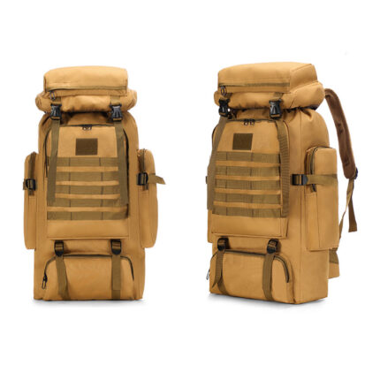 Lizbin Sac à Dos de Randonnée De Camping 80L, Sac à Dos Tactique Militaire Molle Extra Large, Résistant à l’eau (beige)